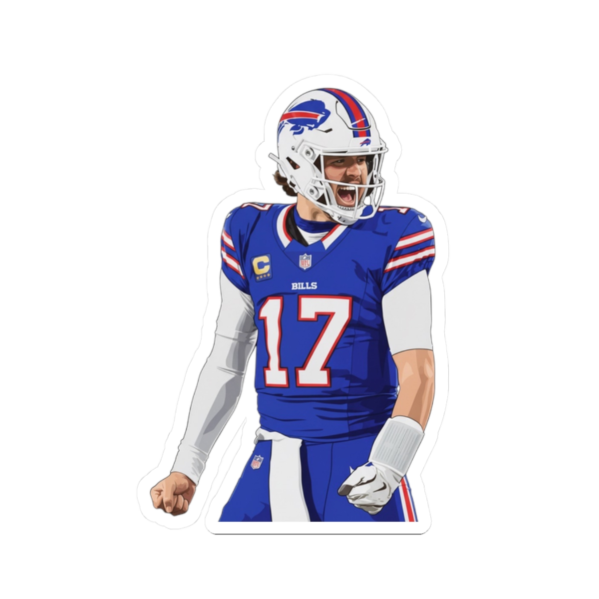 Designed with clean lines, flat colors, and high-contrast shading, this sticker captures the Bills superstar in a powerful celebration pose. Perfect for laptops, water bottles, notebooks, or anywhere you want to show your love for football.
