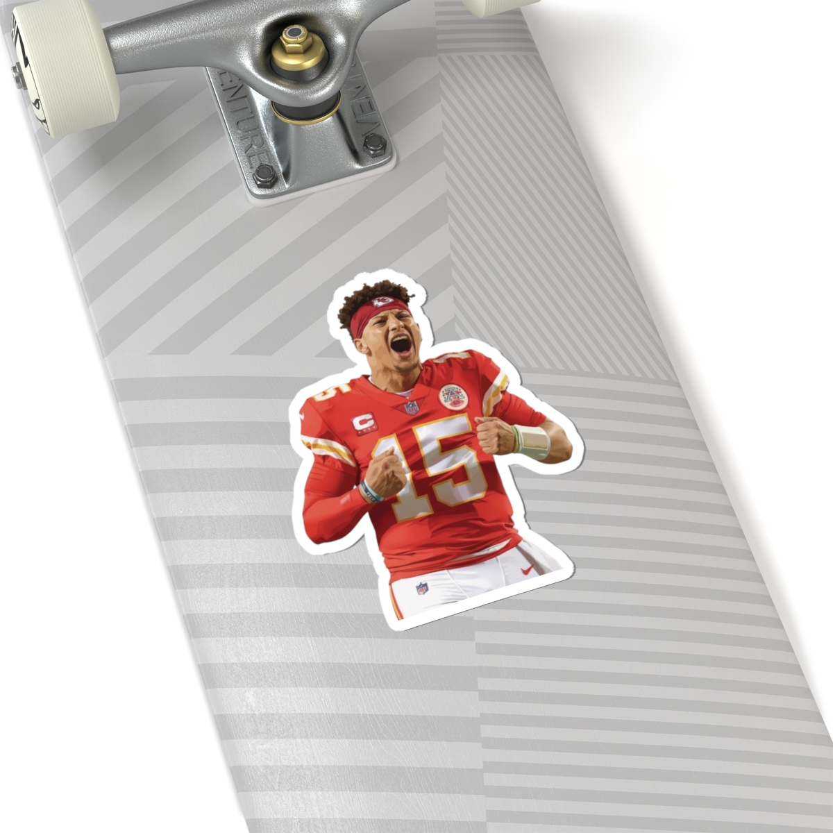 Capture the energy of Patrick Mahomes in this sticker! Featuring clean lines, flat colors, and high-contrast graphics, Mahomes’ iconic celebration comes to life, perfect for laptops, water bottles, notebooks, or anywhere you show your love for football.